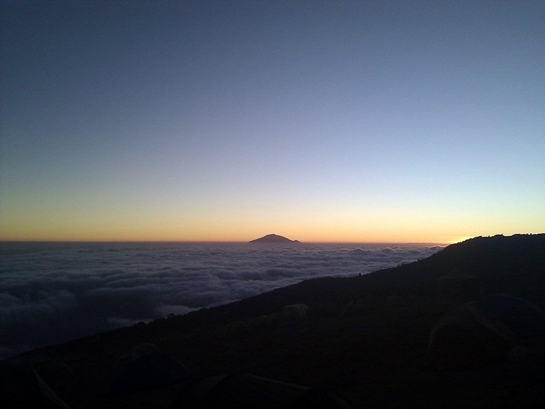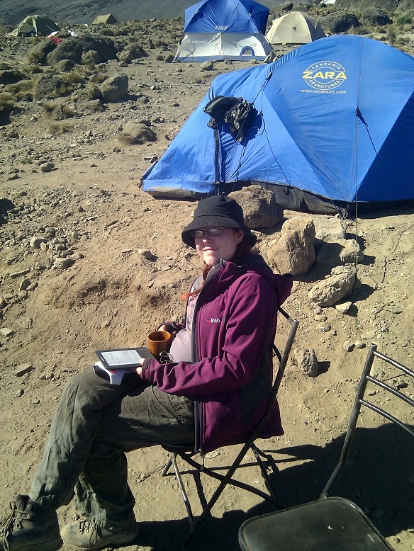 That afternoon was the first afternoon we had off for a while. Usually we’d only arrive at camp sites at 4-6pm and wash, eat and sleep. But now we had about 4 hours before dinner. It was perfect – warm, sunny and a beautiful view. I sat with my Kindle and mug of tea and read. The sunset was beautiful too – you could just see Mount Meru (a smaller sister volcanic mountain – 4566m) popping up from the clouds. The night sky was always just unbelievable. I’d never been in a place with no artificial light at all, and the amount of stars and the Milky Way was just breathtaking.