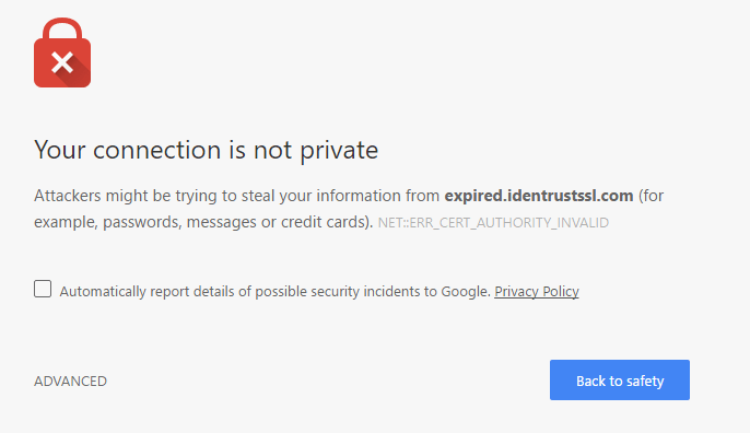 - Making the default option when presented with a security issue to not proceed, such as Google’s “go back to safety” page when presented with a digital certificate error: