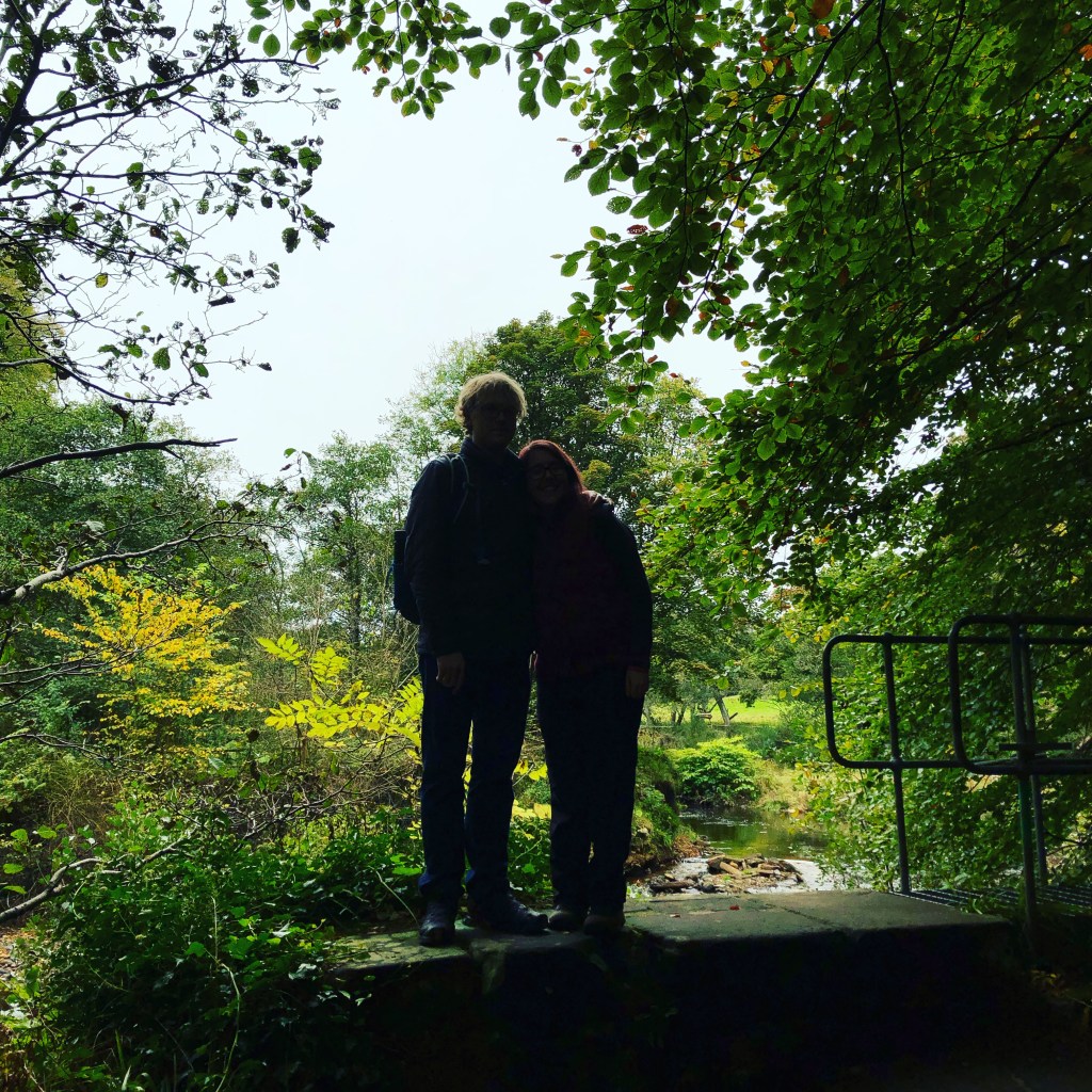 The walk doesn’t start that scenic, you walk beside a sewage works (amazingly didn’t smell at all but wasn’t particularly pleasant to walk so close to) and then have to walk along and cross quite busy road to get to the Roslin Glen park. Then the walk becomes really lovely; nice wide path with beautiful scenery – tall trees, ferns, some cliffs and the river North Esk gently flowing to the side of us. This time of year everything is still mostly lush but you can see the start of the autumnal decay. We walked past the ruins of an old gunpowder mill (described as “atmospheric”) which was built in 1804.